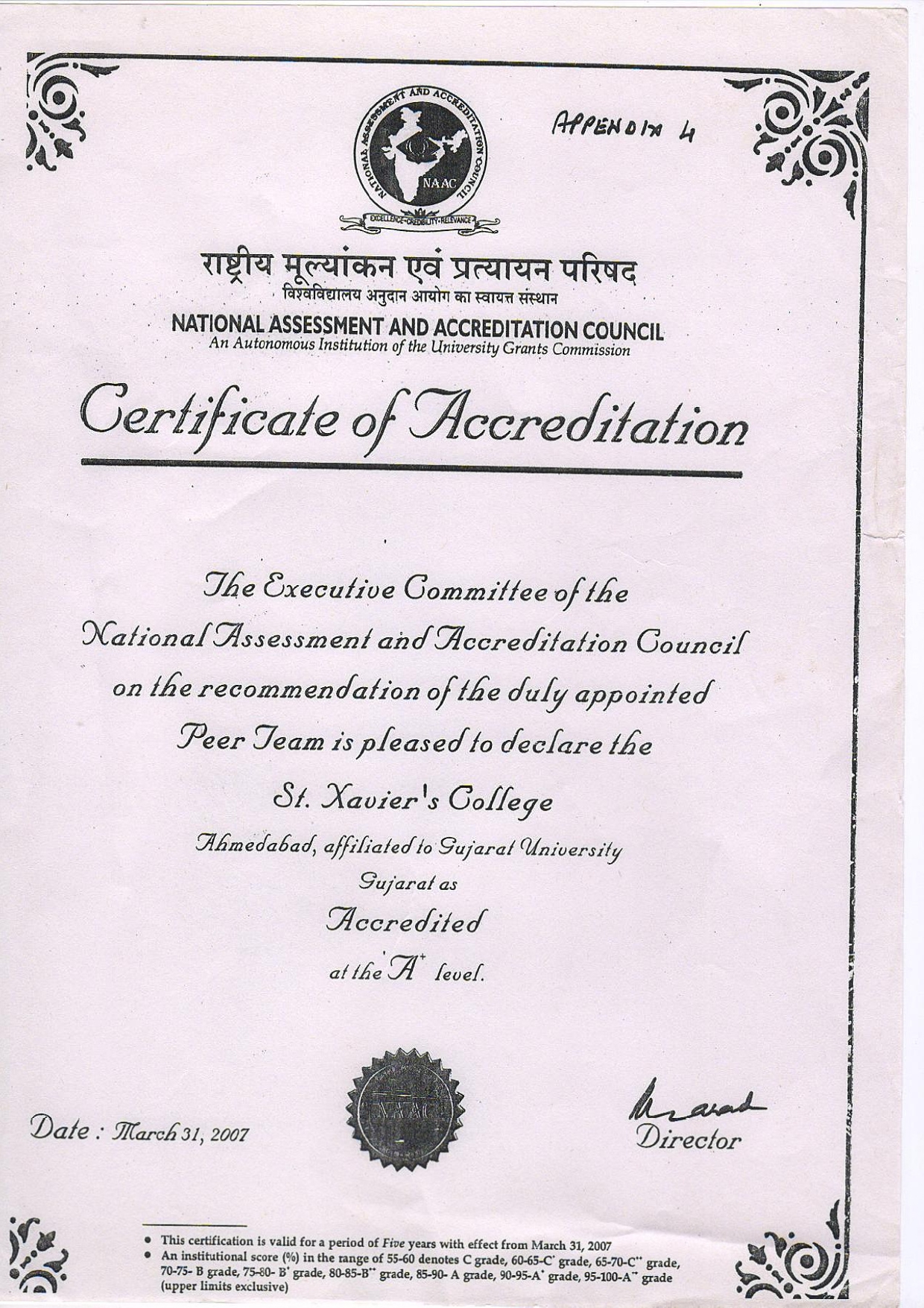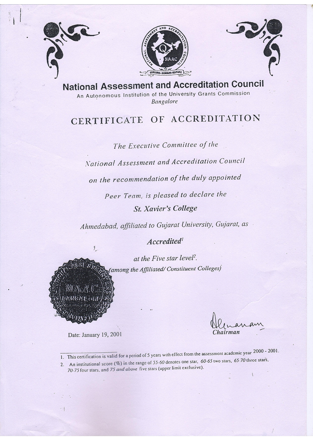 NAAC Certificate 2001 – 2006 (Cycle I)